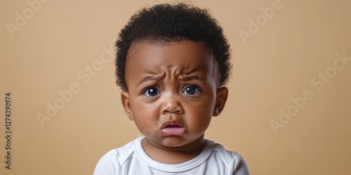 Child with a confused expression showing curiosity and concern in a neutral setting