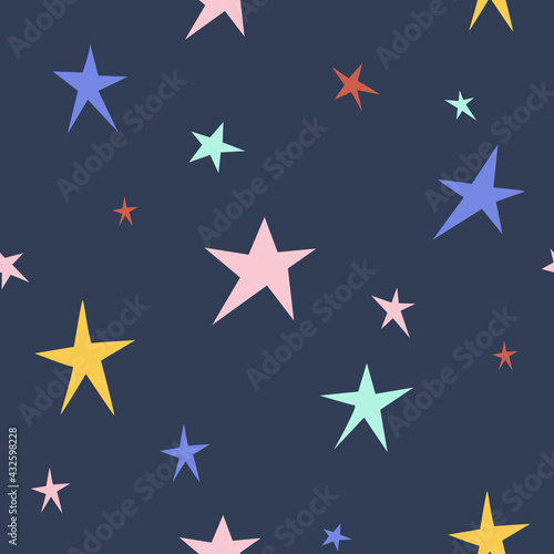 Childish seamless pattern with starry sky. Texture for fabric, wrapping, textile, wallpaper, apparel.
