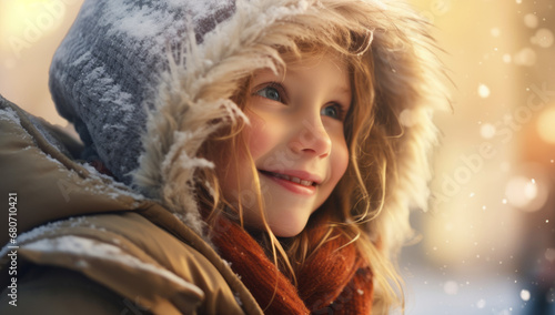 Children, child playing in winter snow as his mom and dad sit on sleds