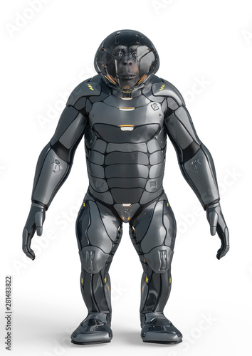 chimpanzee astronaut stand up in a white background
