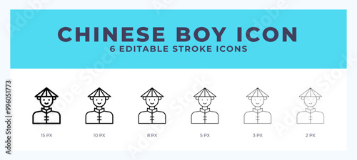 Chinese boy editable line icon. Vector illustration with different stroke.