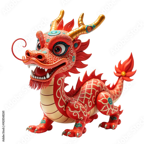 Chinese Dragon Puppet for New Year Celebration on Transparent Background
