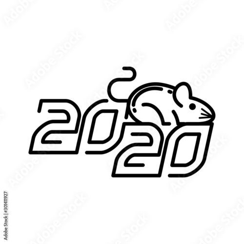 Chinese new year 2020 lettering and logotype, designed with black line design, related number and mouse or rat icon for celebrating Year of the rat