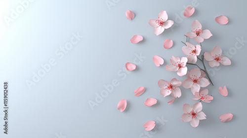 chinese new year 2025 concept. Cherry blossom petals scattered over minimalist background, creating serene atmosphere