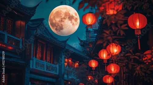 Chinese New Year Lantern. traditional Chinese background showcasing detailed elements with a full moon