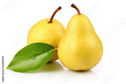 Chinese pear with leaves isolated on white background. (ai generated)