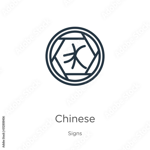 Chinese symbol icon. Thin linear chinese symbol outline icon isolated on white background from signs collection. Line vector sign, symbol for web and mobile