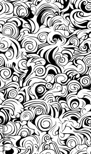 Chinese-inspired doodle tile seamless patterns in an illustrator graphic style