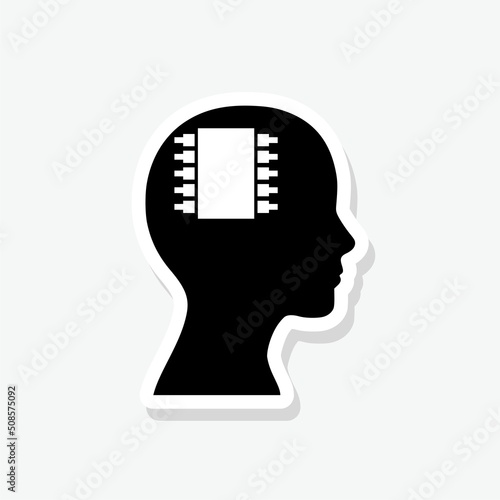Chip inside Human Head icon sticker sign for mobile concept and web design