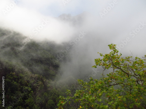 Chmury w lasach deszczowy na wyspie Madera, wysoko w górach, Portugalia