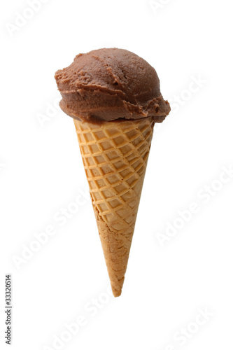 chocolate ice cream with cone on white background