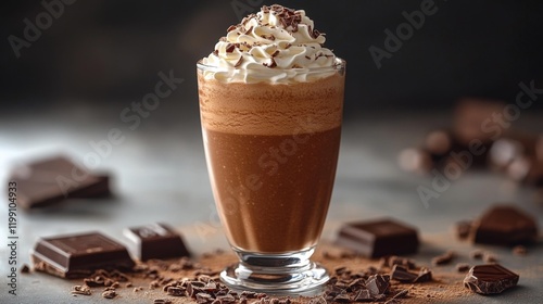 Chocolate Milkshake with Whipped Cream and Chocolate Shavings. Generative AI