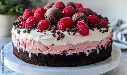 Chocolate Raspberry Truffle Ice Cream Cake, Generative AI
