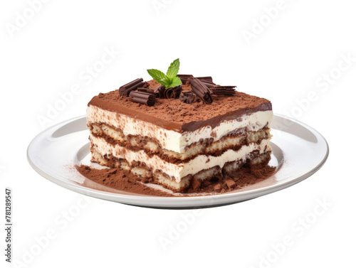 Chocolate Tiramisu isolated on transparent png background. Generative ai