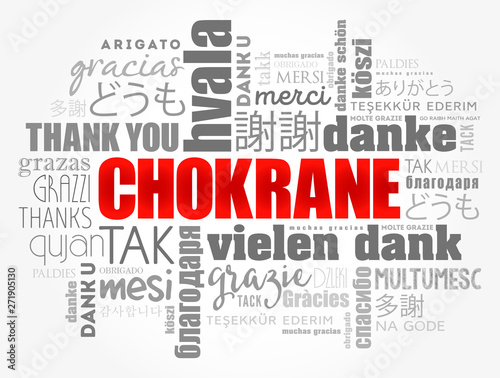 Chokrane (Thank You in Arabic - Middle East, North Africa) word cloud background in different languages