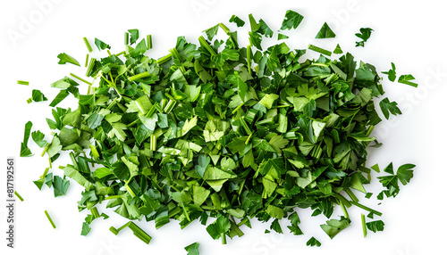 Chopped parsley leaves isolated on white, top view