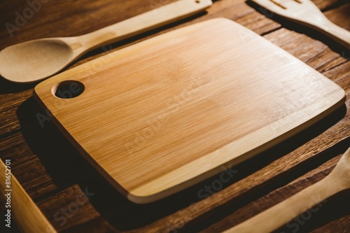 Chopping board with wooden utensils