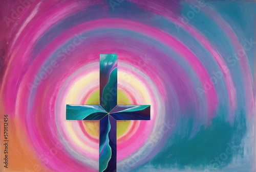 Christian Cross Neon Futuristic Abstract Cyberpunk. Palm Sunday, Good Friday Concept. Ai generated