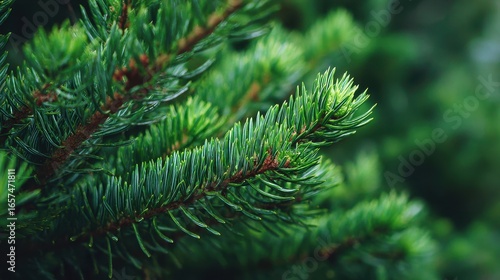 Christmas Background. Evergreen Pine Tree Branches in Natural Forest Setting
