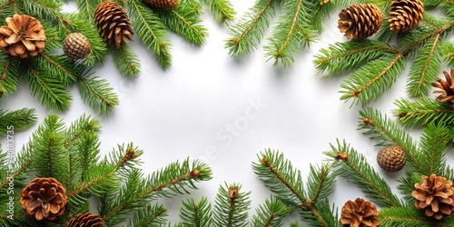 Christmas background featuring tree branches and cones, Christmas, background, tree branches, cones, holiday, festive, winter, decoration