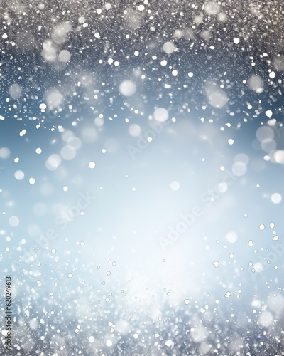 Christmas background with snowflakes and bokeh glitter effect with room for copy. AI generative art.