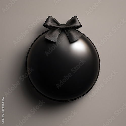 Christmas Black Round Tag Banner with a ribbon, a space for a text, with a festive and luxurious feel