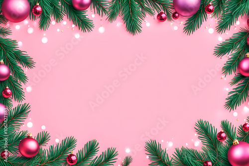 christmas border frame on pink background copy space