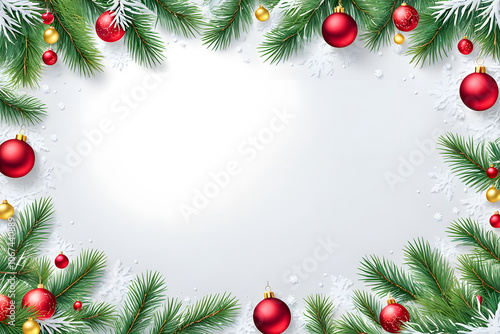 christmas border frame on white snow background with copy space