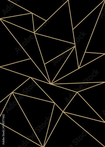 Christmas card with geometric pattern. Holiday card, banner, poster. Greeting card with golden inserts on a dark background