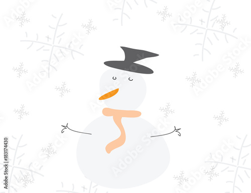 Christmas card with snowman vector - white background with snow