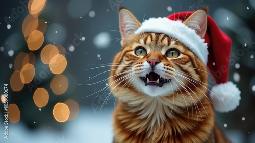 christmas cat in red Santa Claus hat