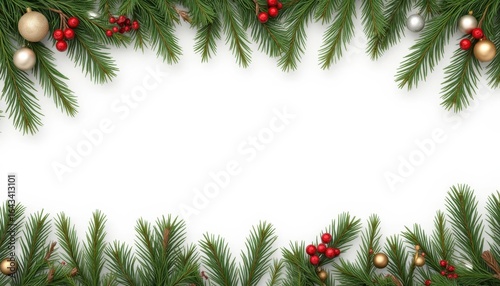 Christmas Decoration with Pine, Red Berries, and Gold Ornaments, Indoor Setting