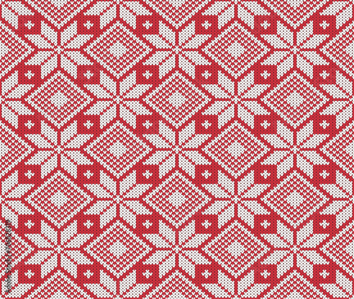 Christmas flower and square Knitting Seamless Pattern. Vector illustration.