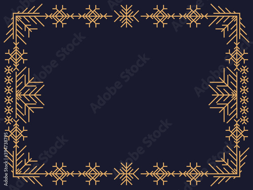Christmas frame in art deco style with snowflakes. Line art vintage linear border. Design a template for invitations, leaflets and greeting cards. The style of the 1920s - 1930s. Vector illustration