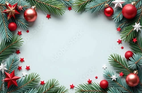 Christmas frame made of Christmas tree, balls and decorations with white background for text. Christmas card. Christmas background for text.