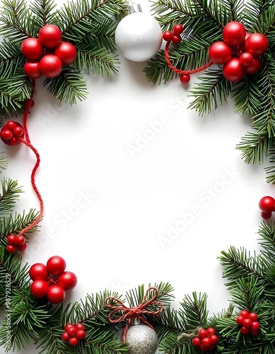 christmas frame with branches and balls christmas greeting card