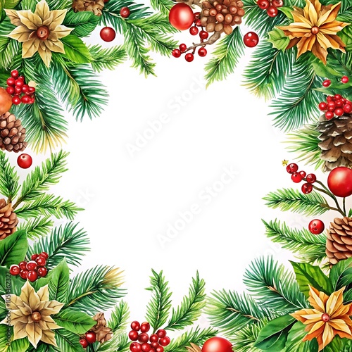 Christmas Frame with Spruce Branches. Holiday Spruce Branches Vector. Festive Christmas Frame Design. Pine Frame Christmas Vector. Holiday Spruce Frame Art.