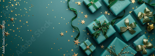 Christmas green background with Christmas gifts decoration - 3d rendering