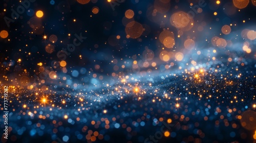 Christmas magic, golden light particles twinkle on navy blue, holiday bokeh dreams, abstract blend of dark blue and gold, AI Generative