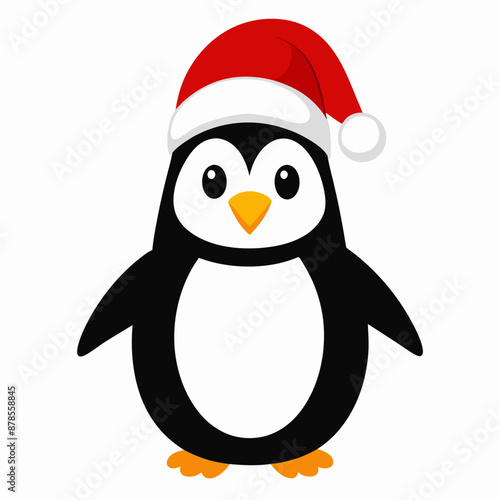 christmas penguin vector illustration, penguin with santa hat, penguin vector art, christmas vector Line art
