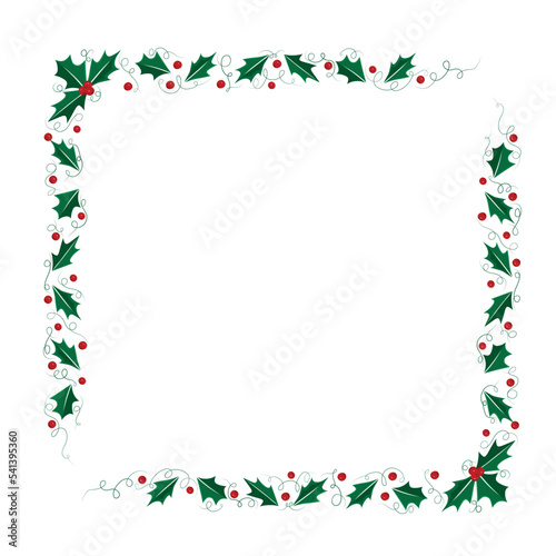 Christmas rectangular frame with holly leaves, border of Christmas thorns with branches and berries
