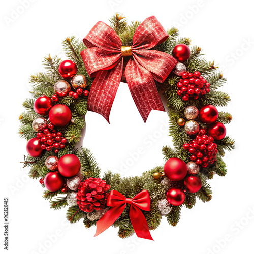 Christmas Red Bow Wreath on White Background