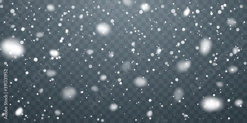 Christmas snow. Falling snowflakes on transparent background. Snowfall. Vector illustration