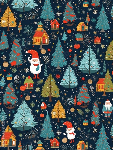 Christmas theme seamless pattern, tree, present