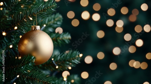 Christmas tree adorned with twinkling lights and shimmering baubles, softly blurred background adding festive cheer