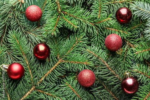 Christmas tree branches with beautiful decor