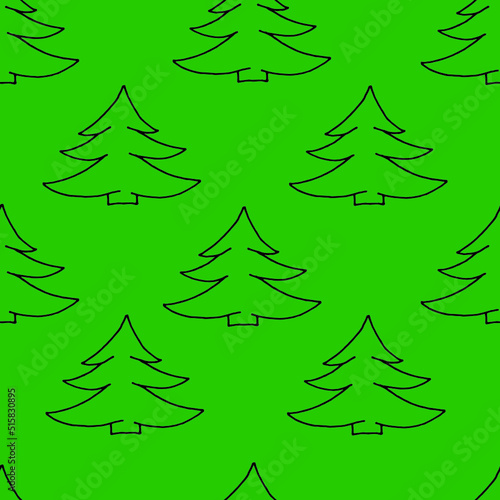 Christmas tree drawn black marker on green paper. Christmas background with christmas trees. New Year concept. Wrapping paper for gifts for the new year. Christmas seamless pattern.
