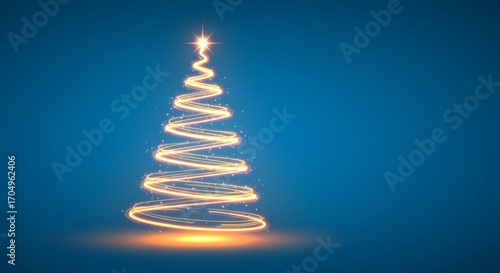 Christmas tree made of light trails on a blue background, sparkling and festive design for holiday greetings and celebration