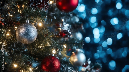 Christmas Tree With Baubles And Blurred Shiny Lights