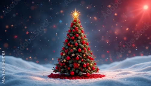 Christmas Tree with Red Balls and Stars